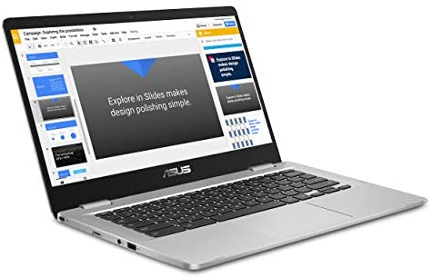 ASUS Chromebook Laptop- 14.0″ HD 180 Degree NanoEdge Display, Intel Dual Core Celeron N3350 Processor, 4GB RAM, 32GB eMMC Storage, USB Type-A and Type-C, Chrome OS- C423NA-DH02 Silver