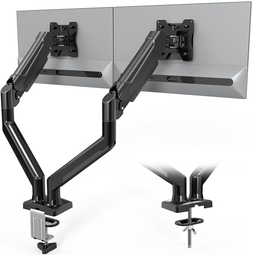 BONTEC Dual Monitor Desk Mount for 13-32 Inch Screens, Ergonomic Gas Spring Arm Stand with Cable Management, Tilt, Swivel, Rotation, VESA 75×75, 100x100mm