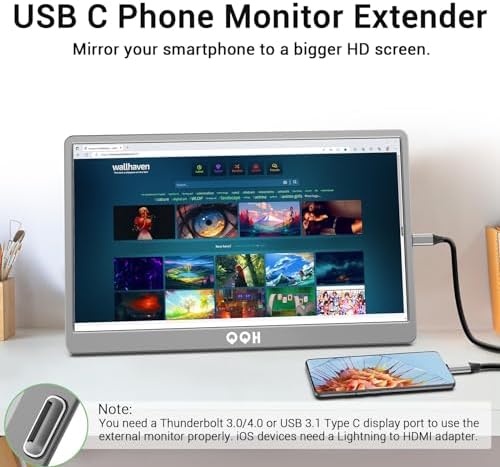 [Plug, Play- NO driver needed]- This QQH monitor with a full-featured USB Type-C Port that supports one Type-C cable to realize high-definition transmission of video signals. NOTE: Your USB C device Port should be Thunderbolt 3/4 or support the Display function. Plug, and Play. Let the QQH portable laptop monitor boost your productivity anytime, anywhere.