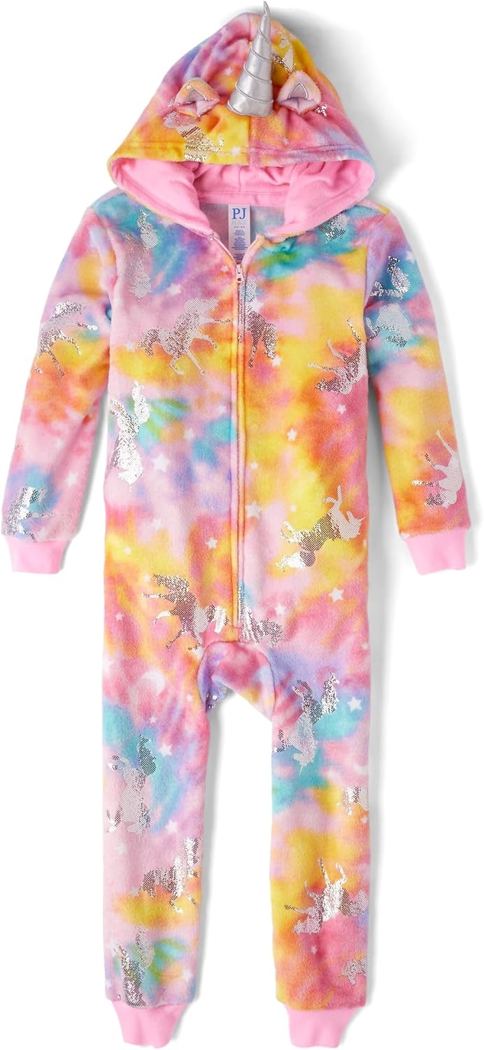 The Children’s Place Girls’ Long Sleeve Fleece Zip Up One Piece Pajama