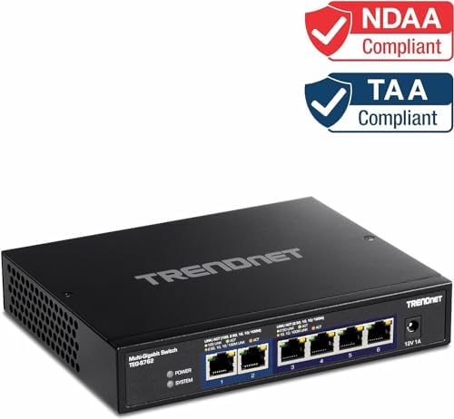TRENDnet 6-Port 10G Switch, 4 x 2.5G RJ-45 BASE-T Ports, 2 x 10G RJ-45 Ports, 60Gbps Switching Capacity, Wall Mountable, 10 Gigabit Network Connections, Lifetime Protection, Black, TEG-S762